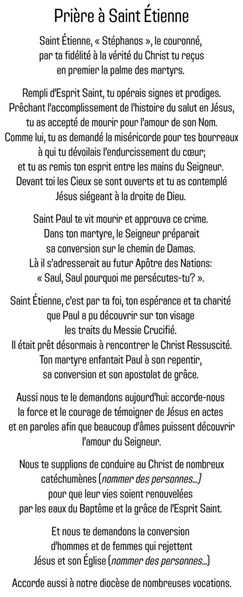 Neuvaine à St Etienne 30 janvier 2026 Neuvaine à St Etienne 30 janvier 2026|Actus La neuvaine de prière se déroulera du 7 au 15 février inclus. Voir plus d'actualités Neuvaine à St Etienne Concert 400 ans Nuit d’Adoration du 11 au 12 février 2026 Publié dans Actus